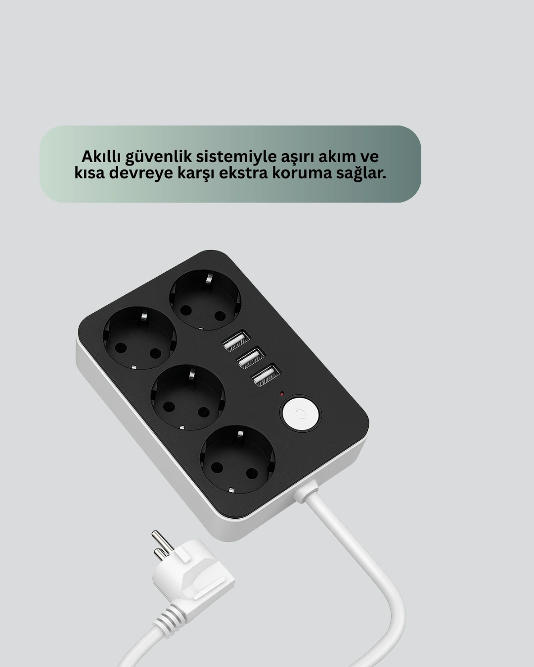 3 USB Çıkışlı 4’lü Akıllı Priz 2500W 2 Metre Kablo