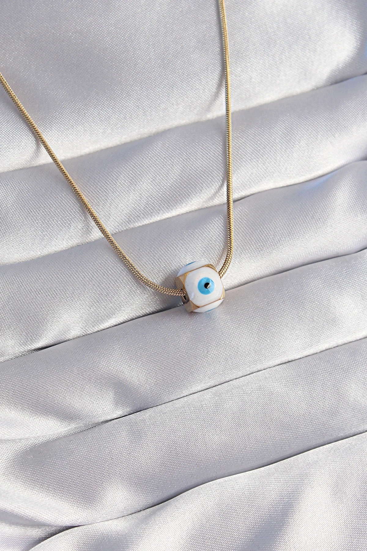 • 316L Çelik Gold Renk Mineli Nazar Model Kolye