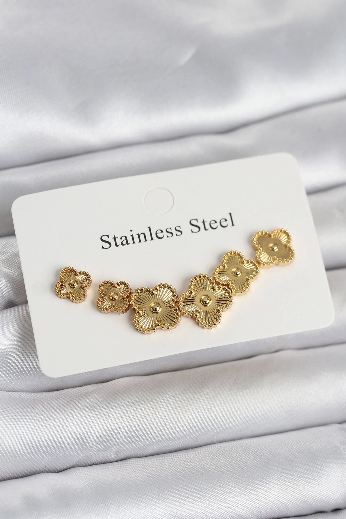 • 316L Çelik Gold Renk Yonca Küpe Seti