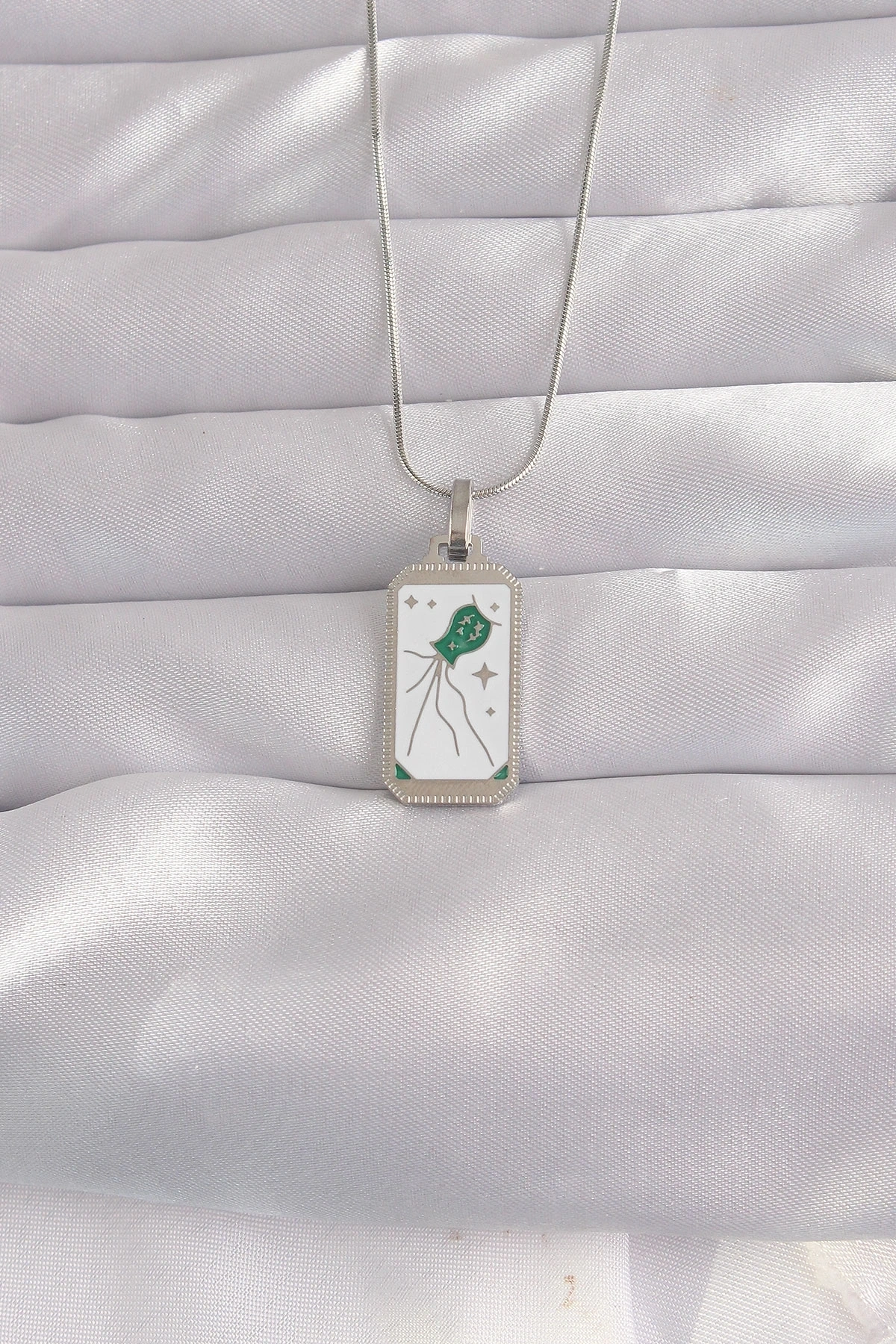 • 316L Çelik Gümüş Renk Beyaz Mineli Tarot Kolye