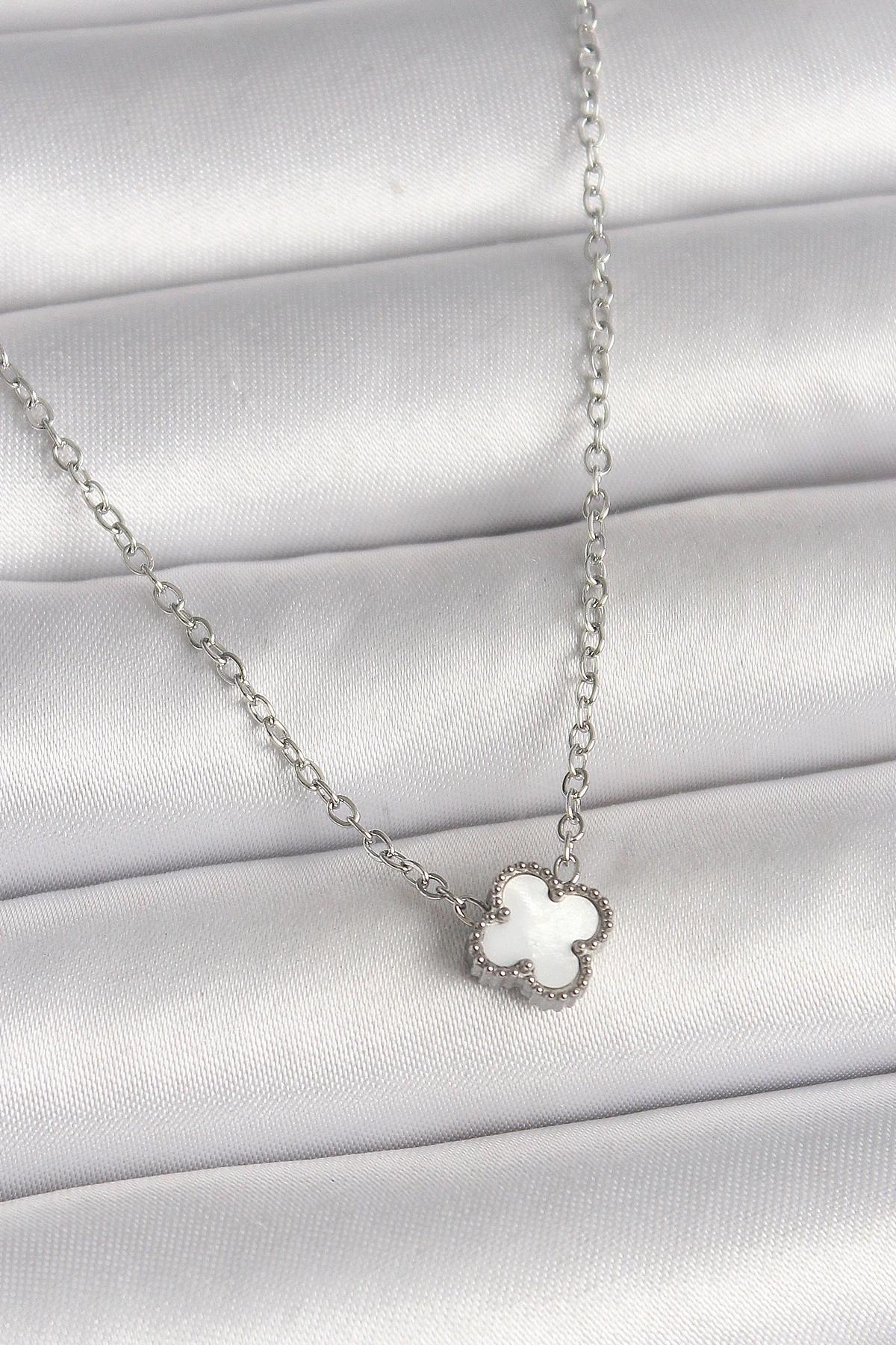 • 316L Çelik Gümüş Renk Beyaz Yonca Model Kadın Kolye