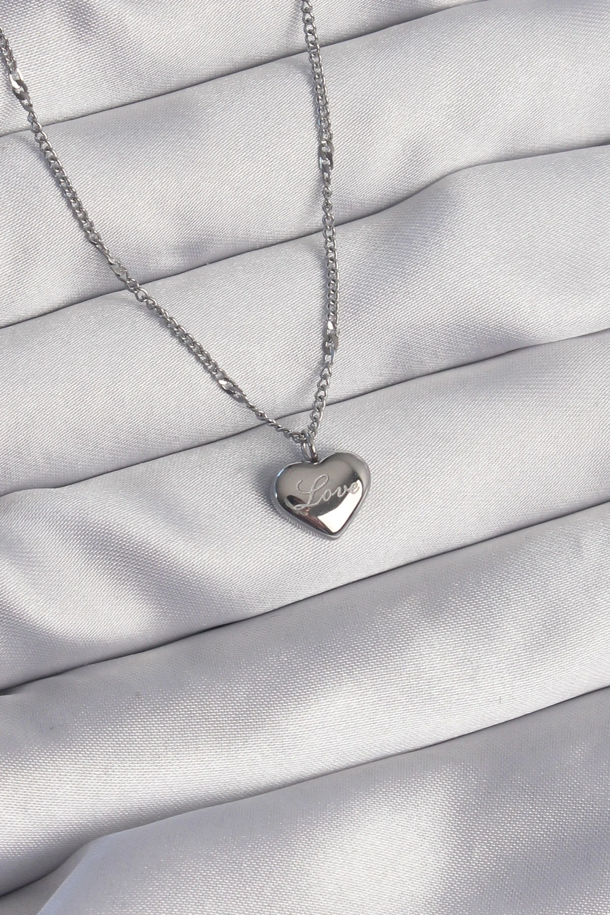 316L Çelik Gümüş Renk Kalp Model Love Kolye
