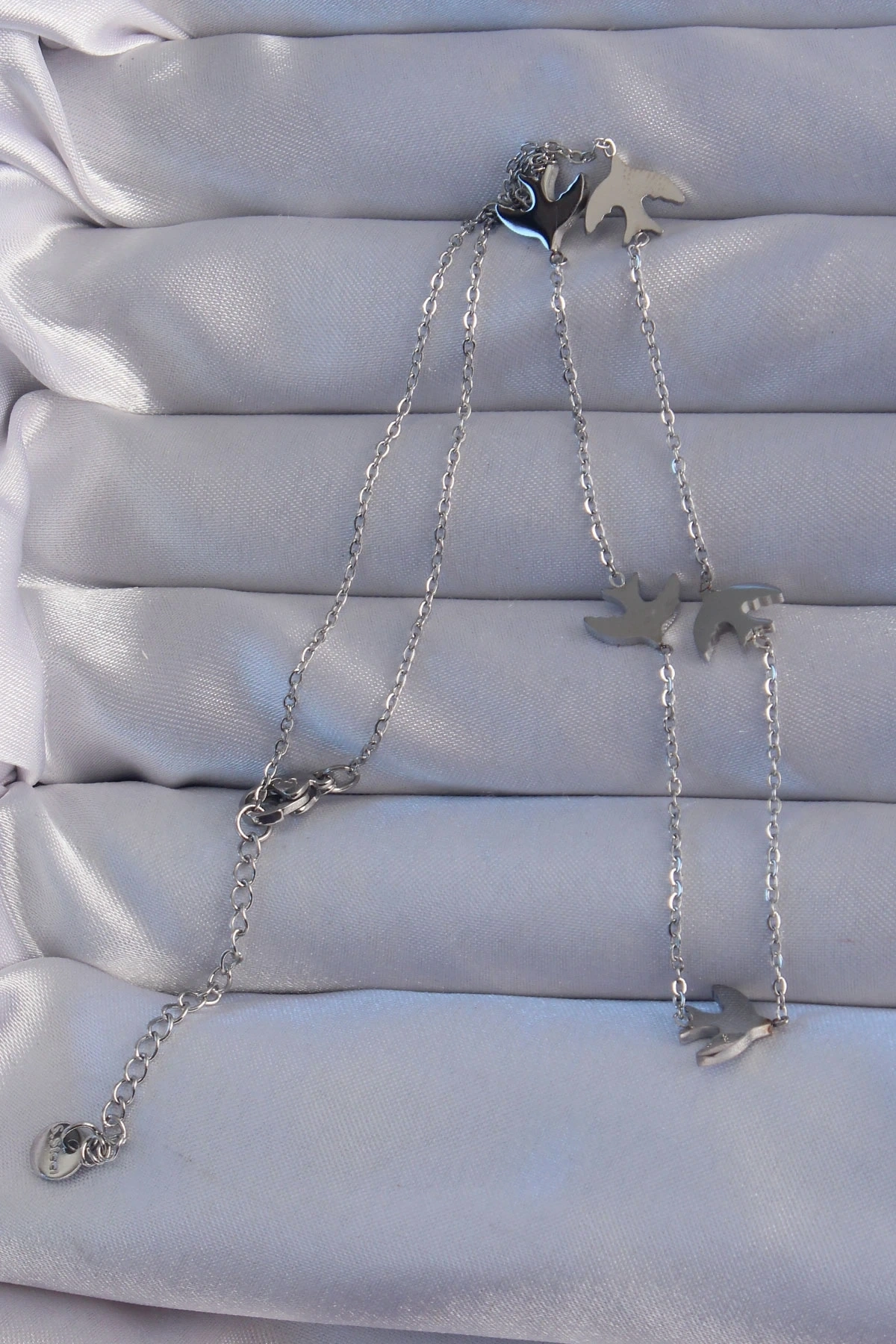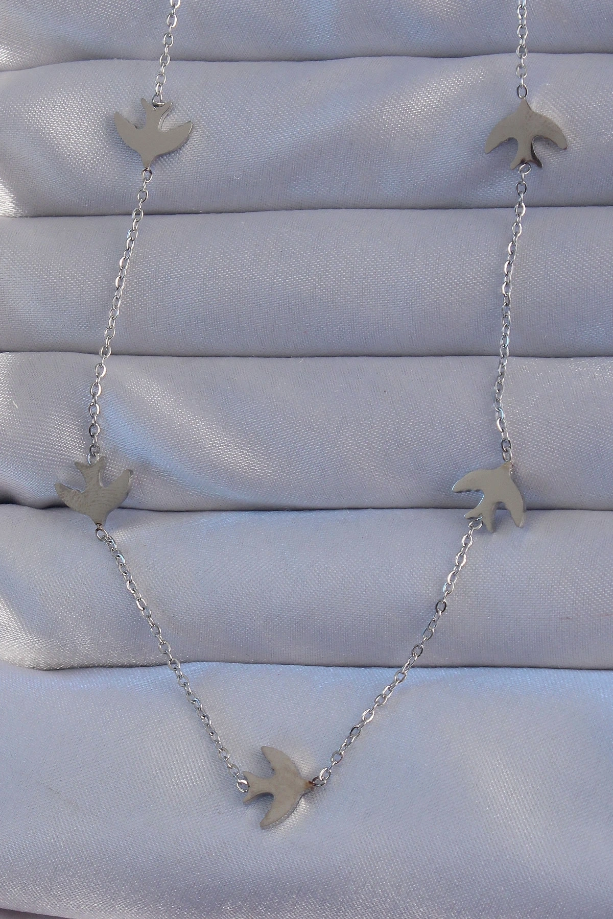 • 316L Çelik Gümüş Renk Kuş Model Kolye