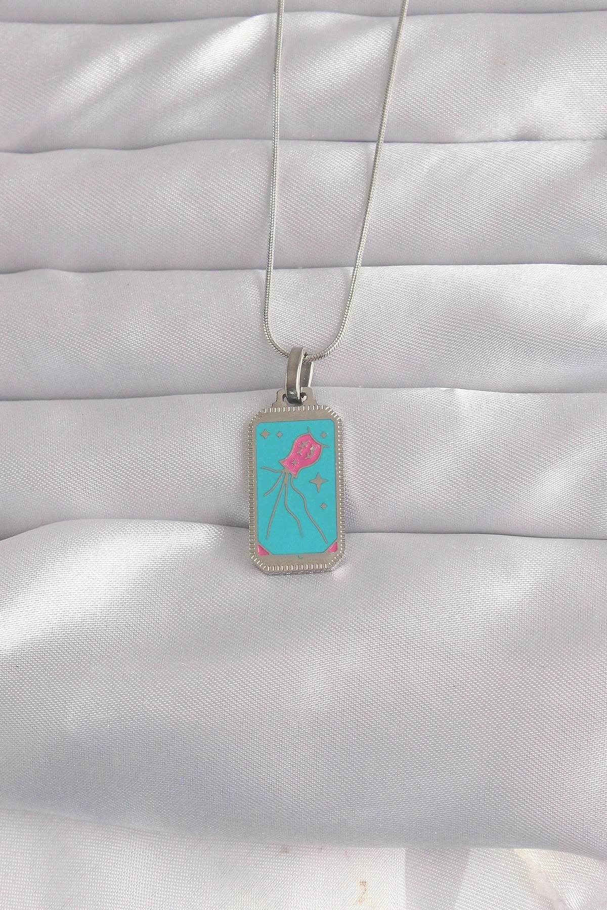 • 316L Çelik Gümüş Renk Mavi Mineli Tarot Kolye