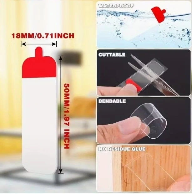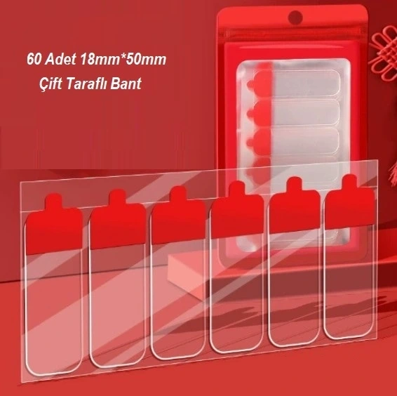 Duvarlarınızı delmeden, çivi çakmadan eşyalarınızı sabitlemek artık çok kolay. 60'lı Paket Hazır Kesilmiş Çift Taraflı Bant, şeffaf yapısı ve yüksek yapışma gücüyle dekorasyon, düzenleme ve sabitleme işlerinizdeki en büyük yardımcınız olacak. Özel olarak kesilmiş boyutları (18mm x 50mm) sayesinde makasla uğraşmanıza gerek kalmadan pratik bir kullanım sunar.