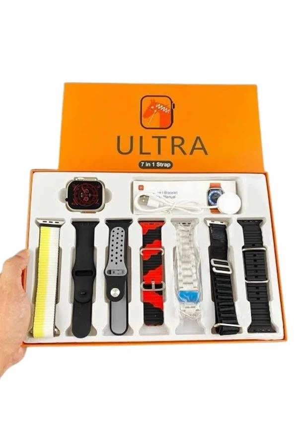 7 Kordonlu Akıllı Saat Plastik Kordon Hasır Kordon Çelik Kordon