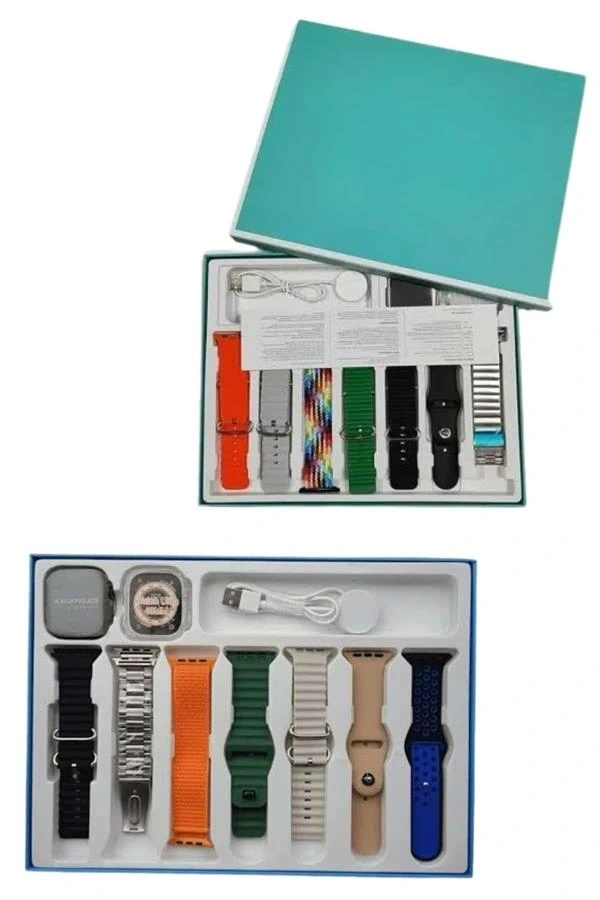 7 Kordonlu Unisex Akıllı Saat Çoklu Kordon Seçeneği Amoled Ekran