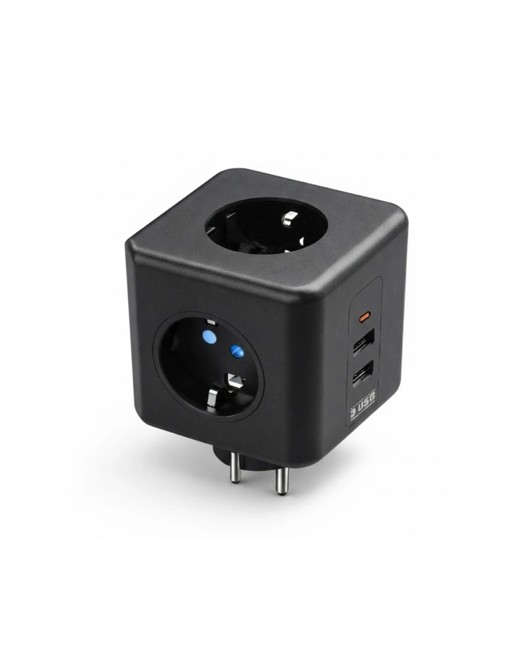 Akım ve Voltaj Korumalı Küp Priz 3 USB Destekli