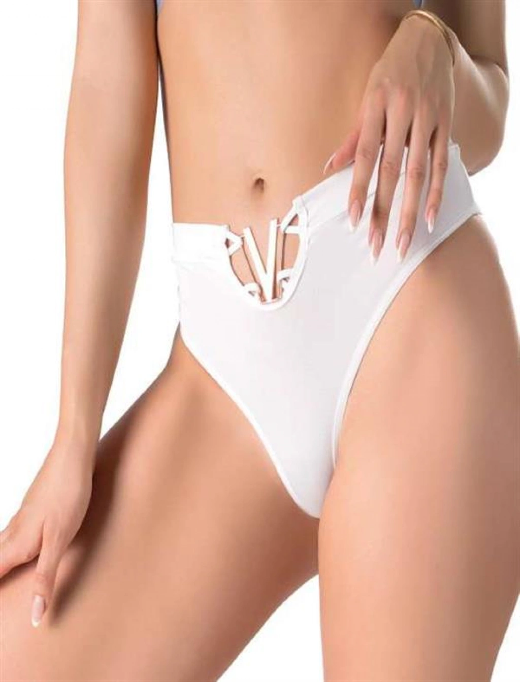 Zarafeti ve çekiciliği aynı anda hissetmek isteyenler için tasarlanan bu özel parça, masum beyazın saflığınıV metal aksesuarın iddialı duruşuyla buluşturur. Yüksek bel kesimi, vücut hatlarını daha uzun ve zarif gösterirken; minimal string formu feminenliği ön plana çıkarır.