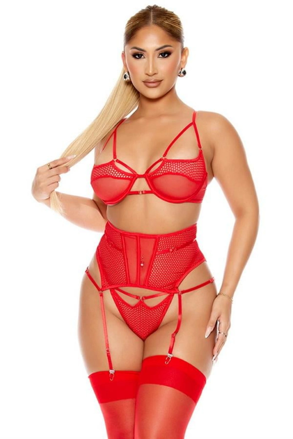 Arias Closet Fantezi File Tül Detaylı Kırmızı Jartiyer Takım