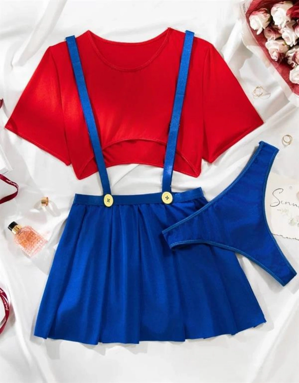 Arias Closet Mavi Kırmızı Fantezi Etekli Takım