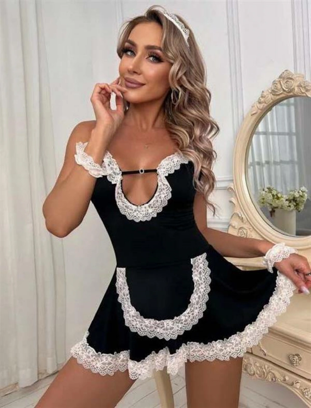 Arias Closet Beyaz Dantel İşlemeli Fantezi Hizmetçi Kostümü