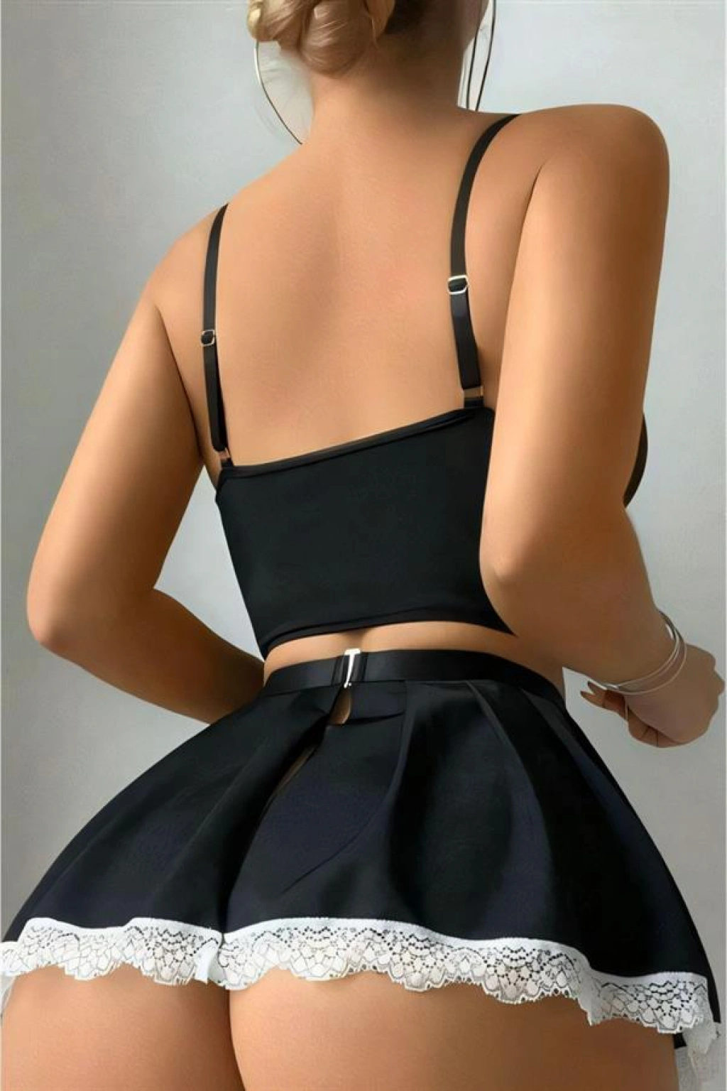Arias Closet Siyah Beyaz Bacak Aksesuarlı Büstiyerli Fantezi Hizmetçi Kostümü