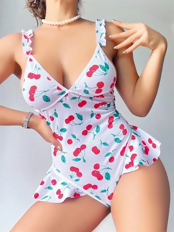Feminen ve Cazibeli: Vişne desenleri ve transparan detaylar ile göz alıcı bir stil.