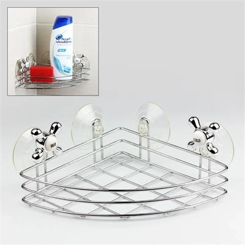 Banyonuzda en çok ihtiyaç duyduğunuz şampuan, krem, kese... v.b. gibi malzemeleri bir arada tutacak Vantuzlu Metal Köşe Banyo Duş Rafı.