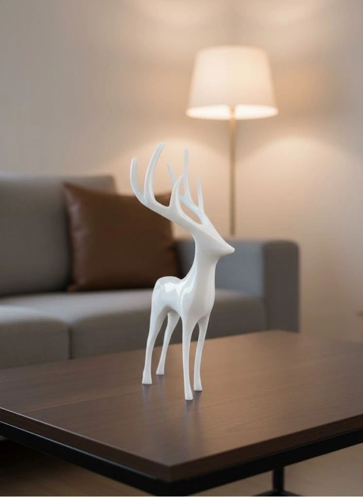 • Beyaz Dekoratif Geyik Figürü Şık Ev Aksesuarı