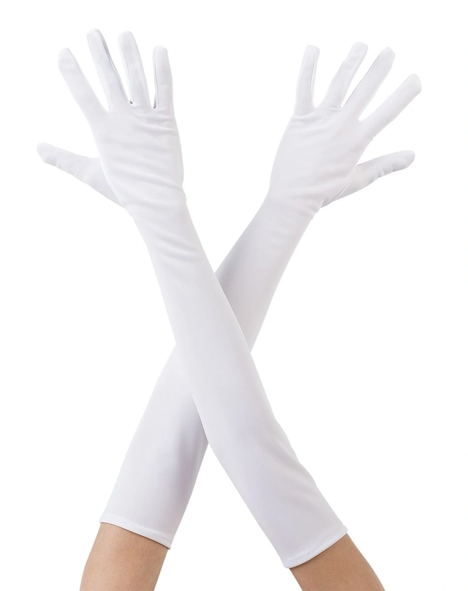 • Beyaz Renk Dirseğe Kadar Uzun Kumaş Eldiven 40 cm (5047)
