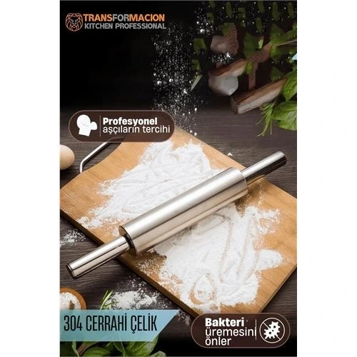 Bu yüksek kaliteli 304 paslanmaz çelikten üretilmiş merdane, dayanıklı yapısı ve ergonomik tasarımıyla profesyonel ve ev kullanımı için mükemmel bir seçimdir. 20 cm uzunluk ve 5 cm çapındaki silindir bölümü, hamurun pürüzsüz bir şekilde açılmasını sağlarken, toplam 40 cm uzunluk geniş kullanım alanı sunar. Ürün Teknik Özellikleri