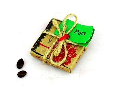 Ürün, özel kraft kutusu içerisinde olup, üzeri iple bağlıdır. Kutu ölçüsü: 4 x 4 cm.dir.