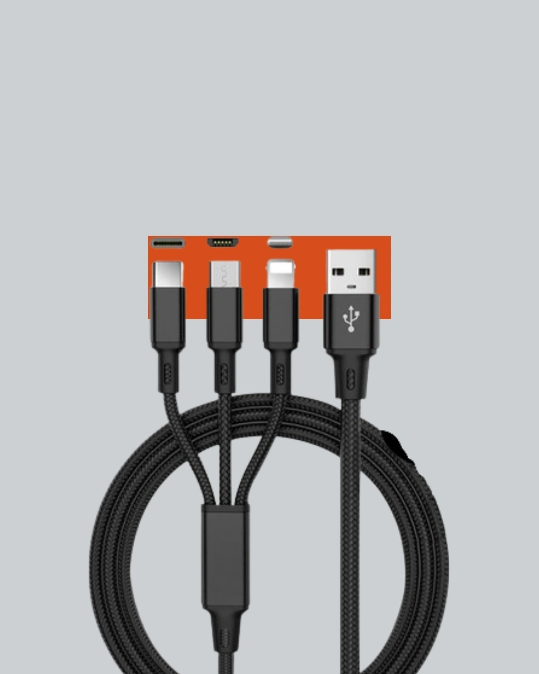 Evrensel 3 Başlıklı Şarj Kablosu – iPhone Huawei Samsung İçin