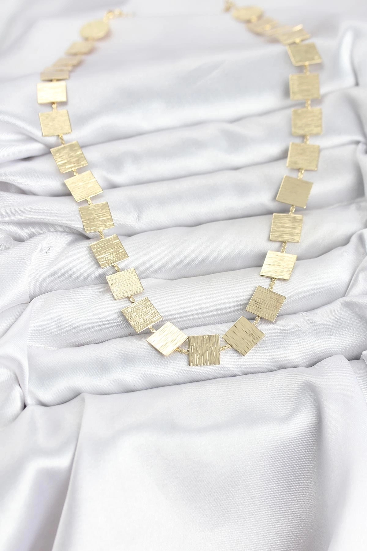 • Kare Plaka Model Gold Renk Kadın Kolye
