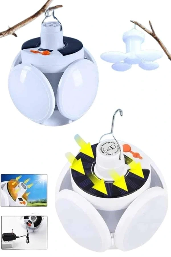 • Katlanabilir Askılı Kamp Lambası 5 Kanatlı Pratik Güneş Enerjili
