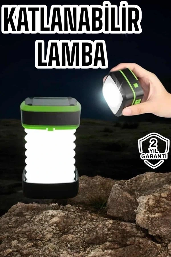 • Katlanabilir Kamp Lambası Solar Fener Görünümlü 3 Kademeli Şarjlı