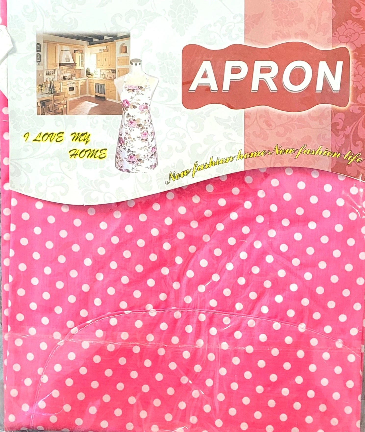 Pembe Kumaş Üzerine, Beyaz Puantiyeli Mutfak Önlüğü İthal Olup, Kaliteli Kumaştan Üretilmiştir