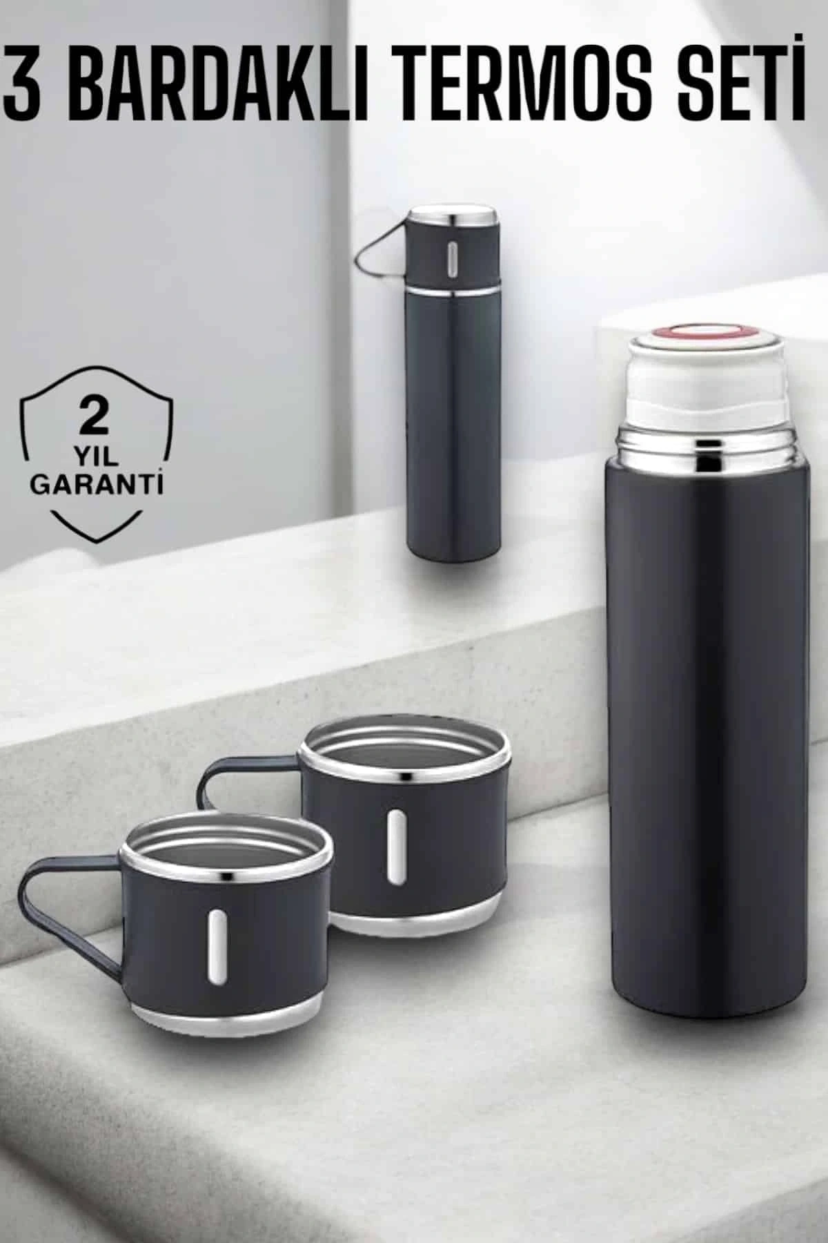 • Paslanmaz Çelik 3’lü Termos Seti Vakumlu ve 8 Saat Isı Koruma