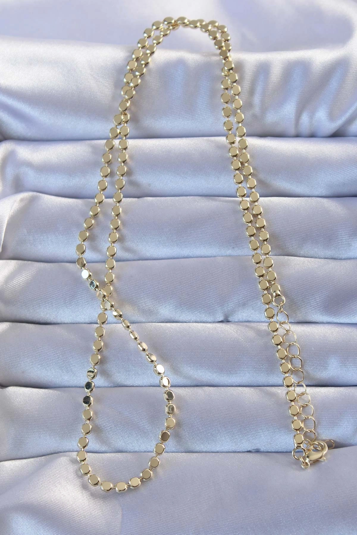 - Uzunluğu 55 cm’dir.- Ürün materyali pirinçtir. - Dikkatli kullanımda kararma, renk atma olmaz. - Ayrıca teninizin bijuteri , kaplama ürünleri kullanmaya uygun olması gerekmektedir. (Bazı tenlerin karartma yaptığı unutulmamalıdır.)- Sağlıklı ve mutlu günlerde kullanmanız dileğiyle…