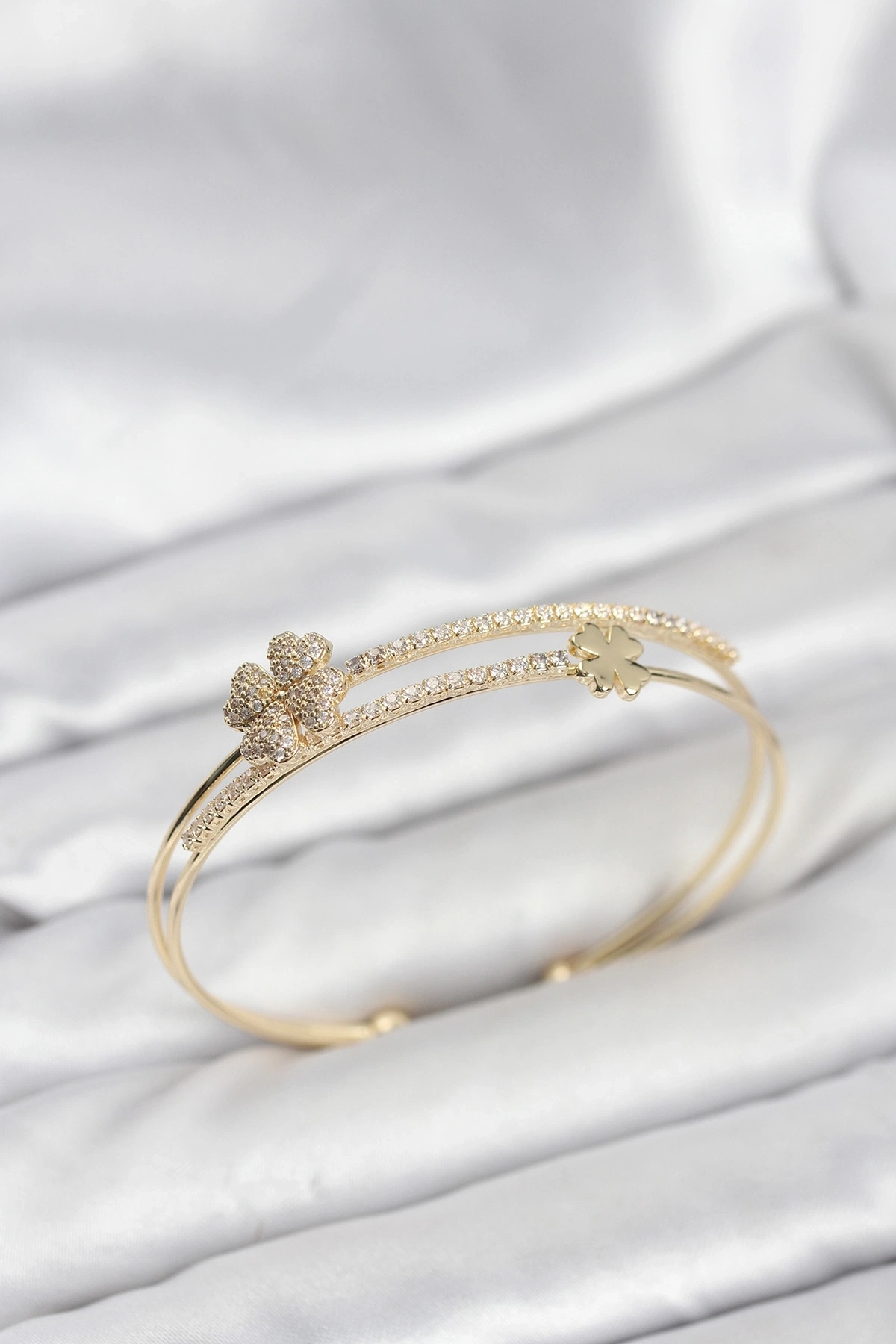 • Pirinç Gold Renk Yonca Model Kadın Bileklik