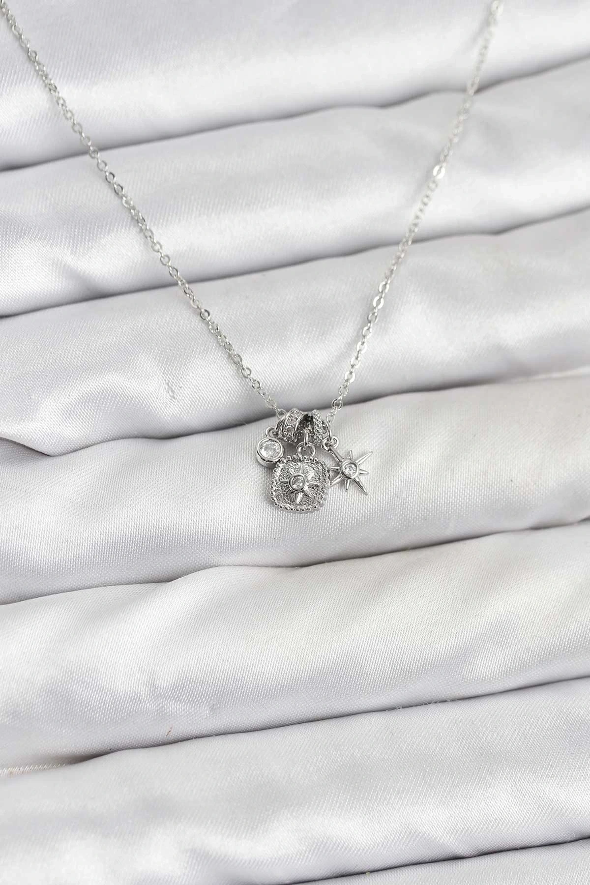 • Pirinç Gümüş Renk Minimal Charmlı Kadın Kolye