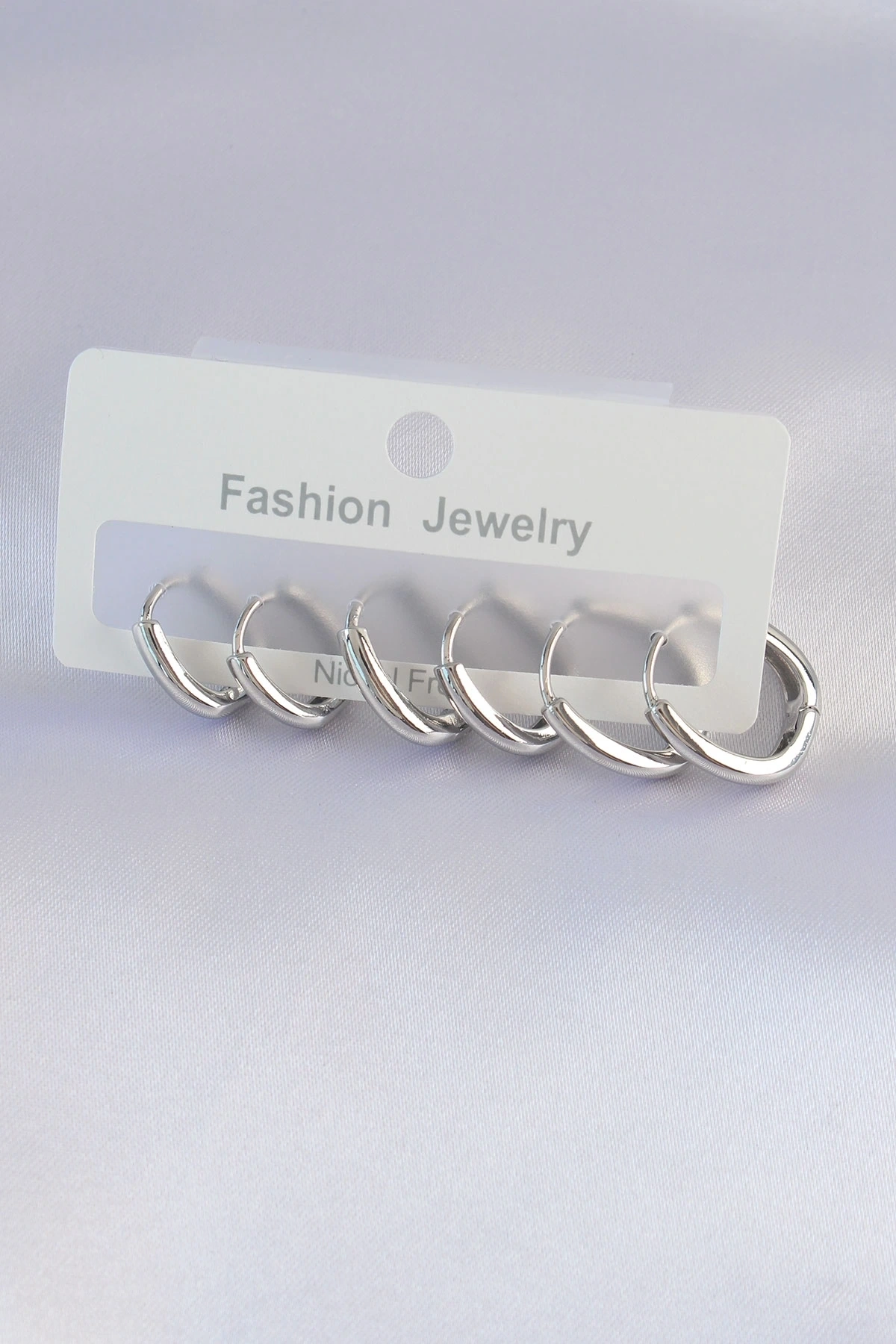 • Pirinç Gümüş Renk Oval Küpe Seti