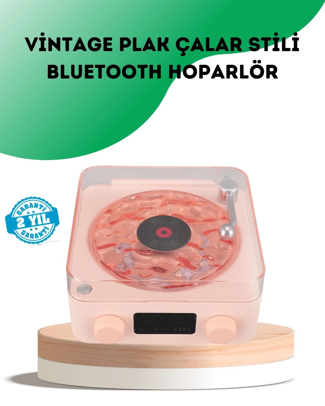 Retro Bluetooth Hoparlör – Kristal Ses, Gece Lambası, Saatli Tasarım