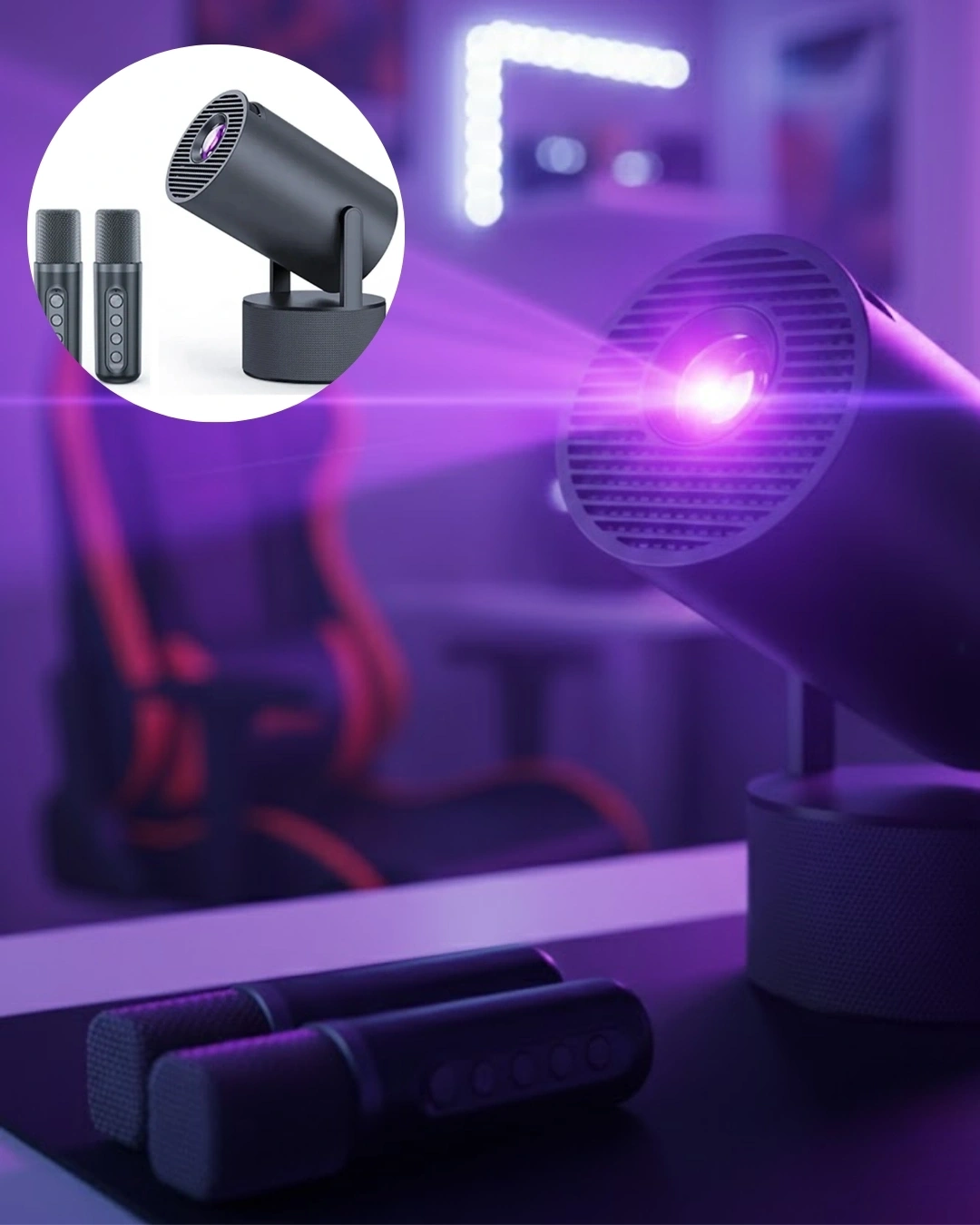 Siyah Android Sistemli Kareoke Projeksiyon 180° Döner Başlıklı