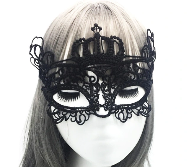 Siyah Renk Dantel İşlemeli Örgülü Parti Maskesi Model 6 (5047)
