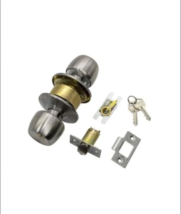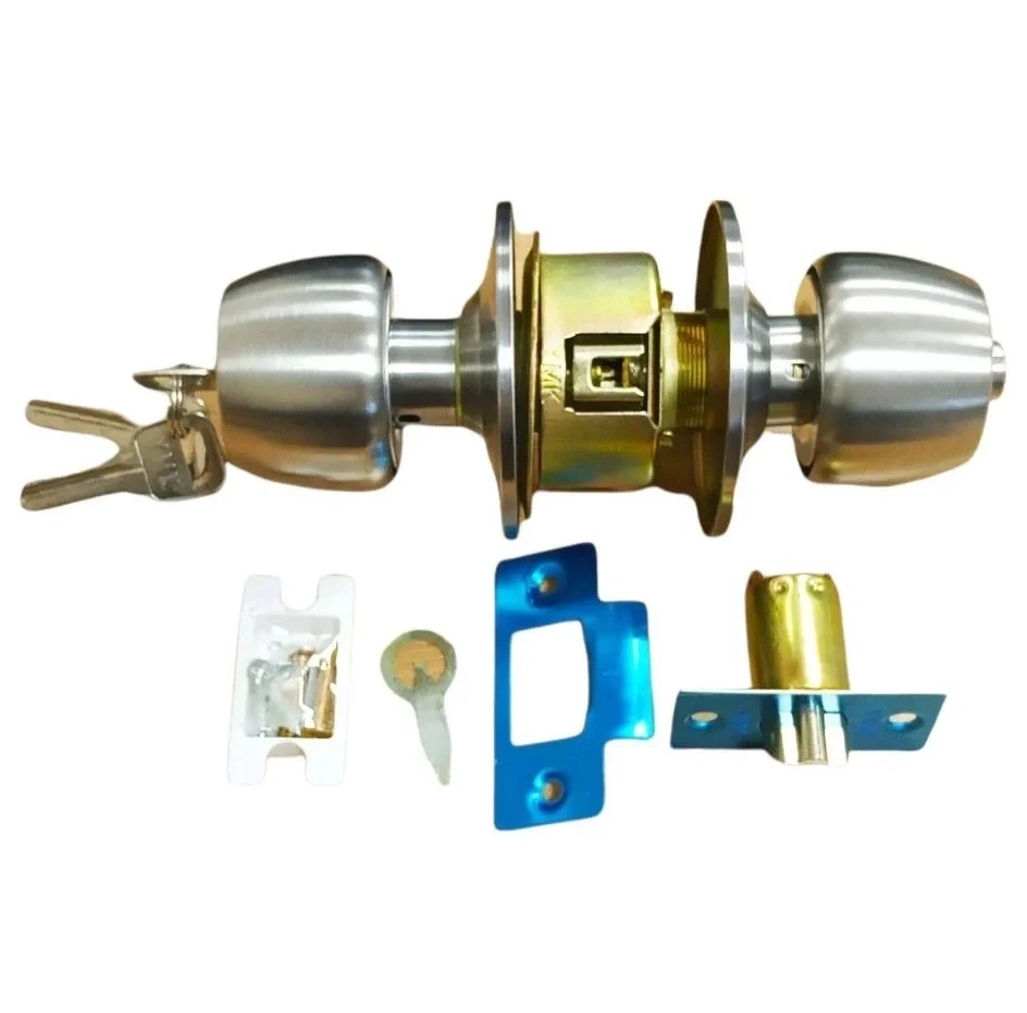 Amerikan kapılarda kullanılan otel tipi kendinden topuzlu oda kilidi. Resimde görüldüğü gibi Gri Saten rengindedir. 3 Anahtarlıdır. Aparatları Mevcuttur. Sertleştirilmiş Çelik Gövde Sağ ve Sol Açılım