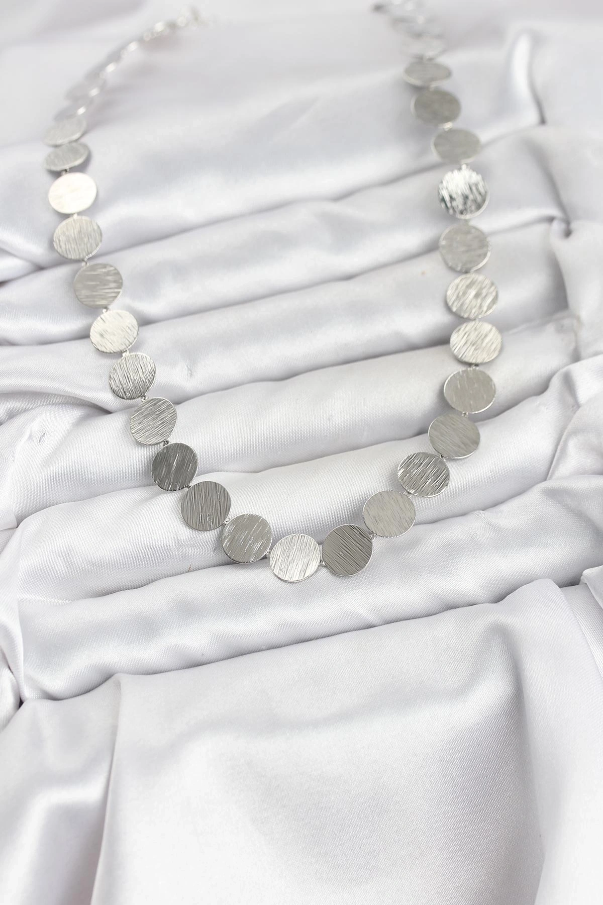 Yuvarlak Plaka Model Gümüş Renk Kadın Kolye